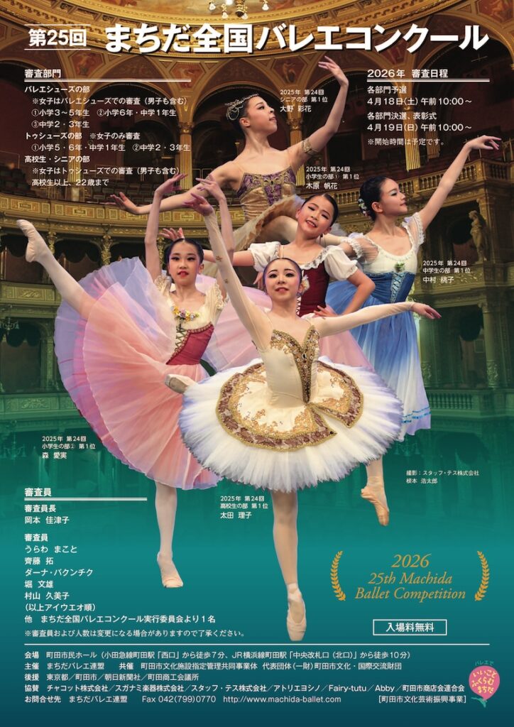 2026年4月18、19日、町田市民会館において開催される第25回まちだ全国バレエコンクールの開催概要が発表されました。